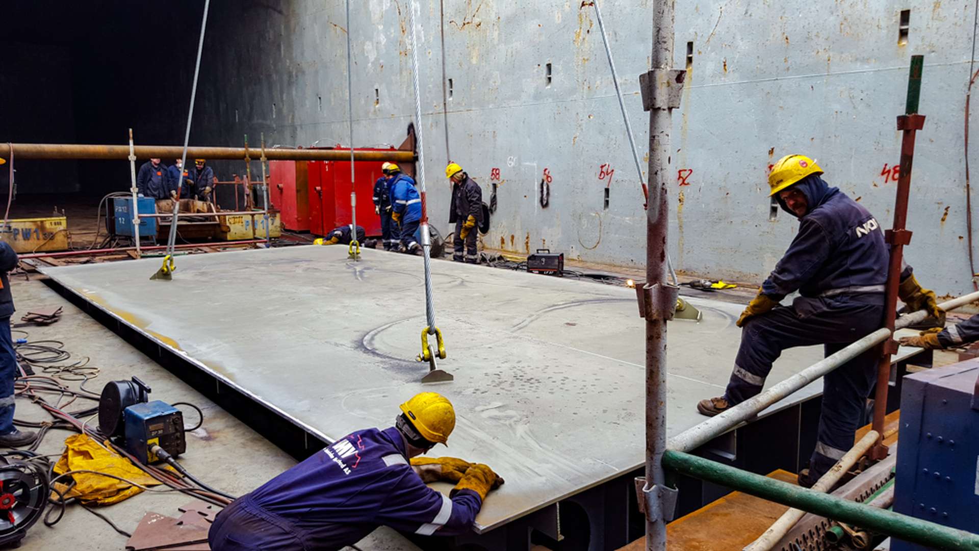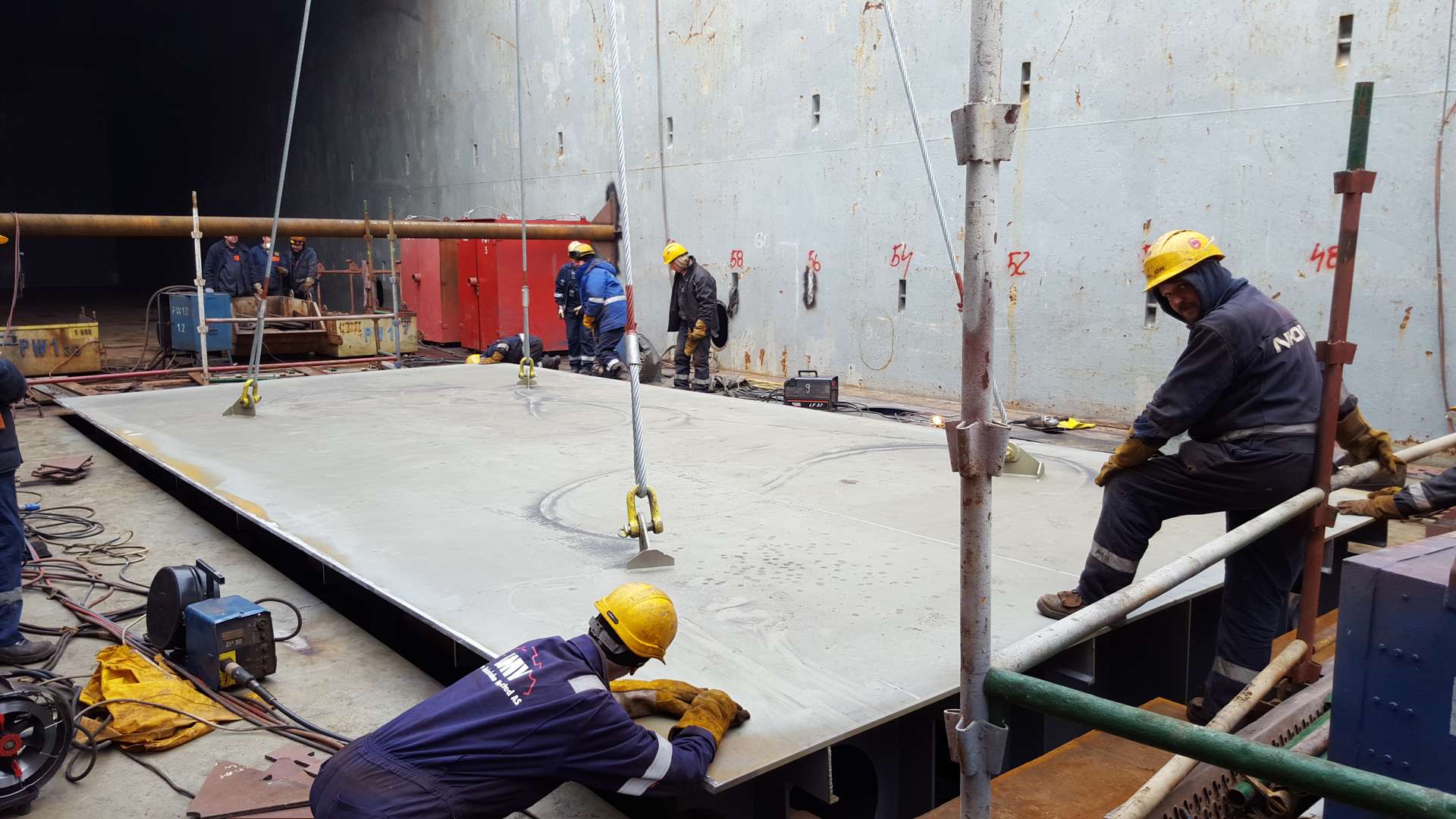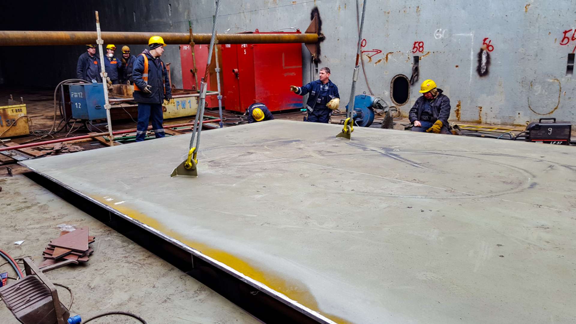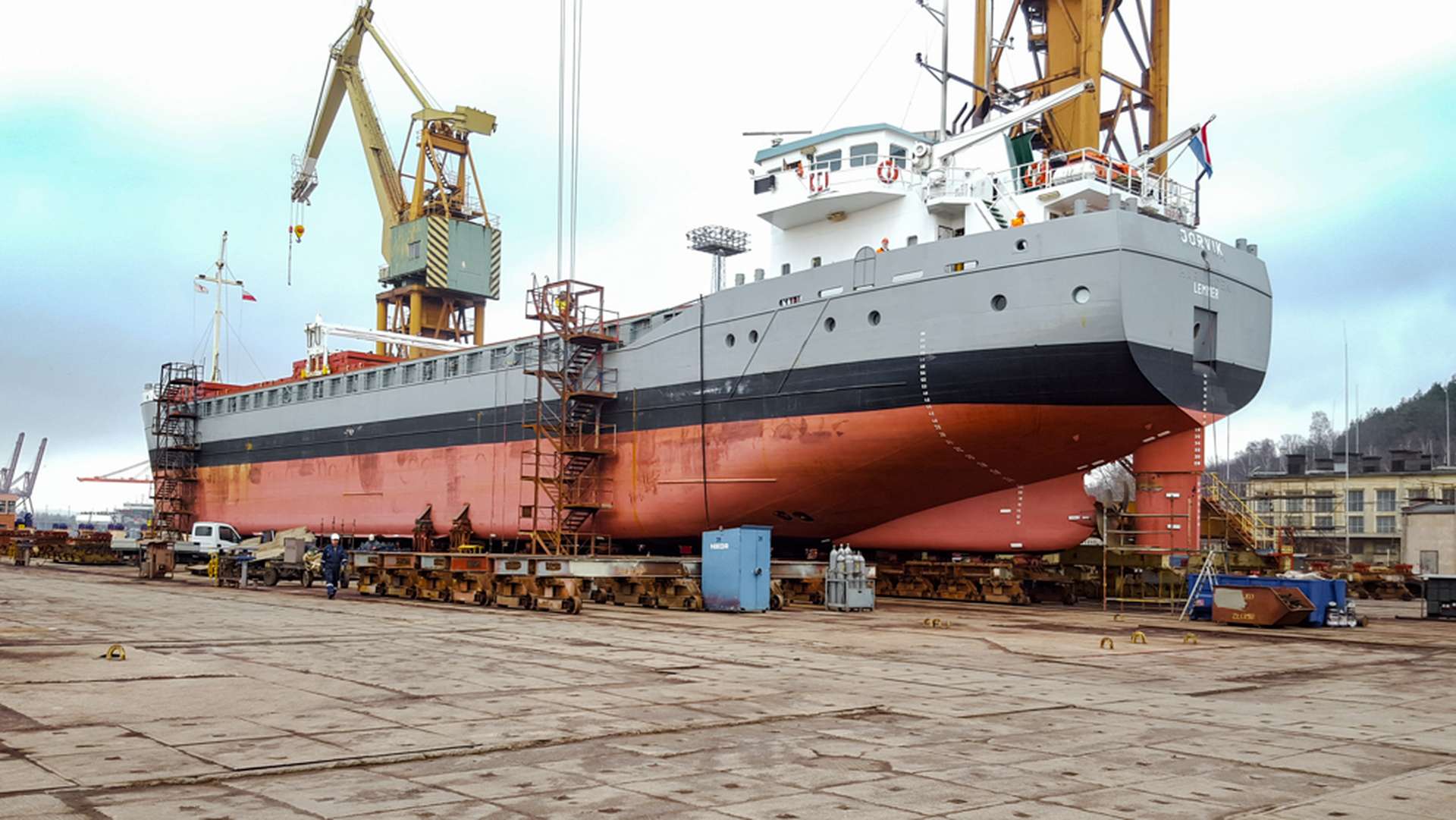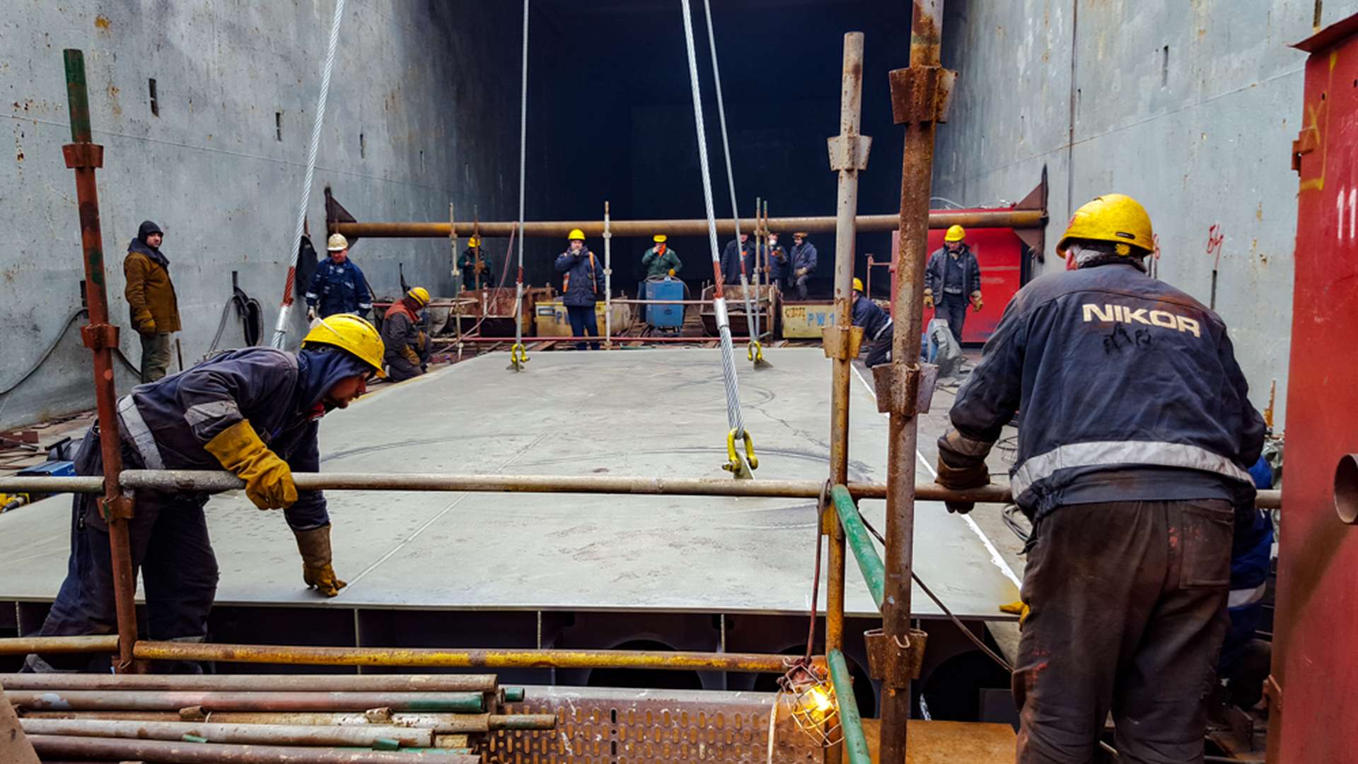 Jednostka Jorvik trafiła do stoczni po osadzeniu na mieliznę. Nasz remont polegał na prefabrykacji centralnej części dna wewnętrznego/zewnętrznego oraz montażu jej w kadłubie.
