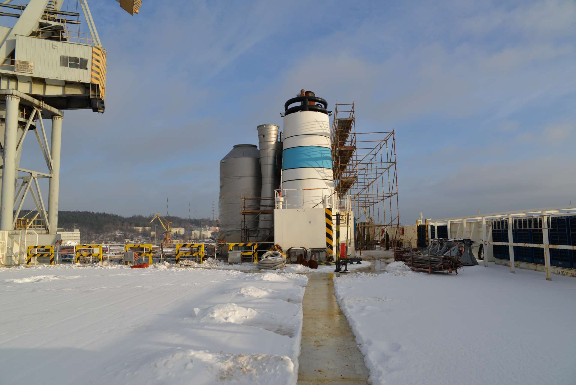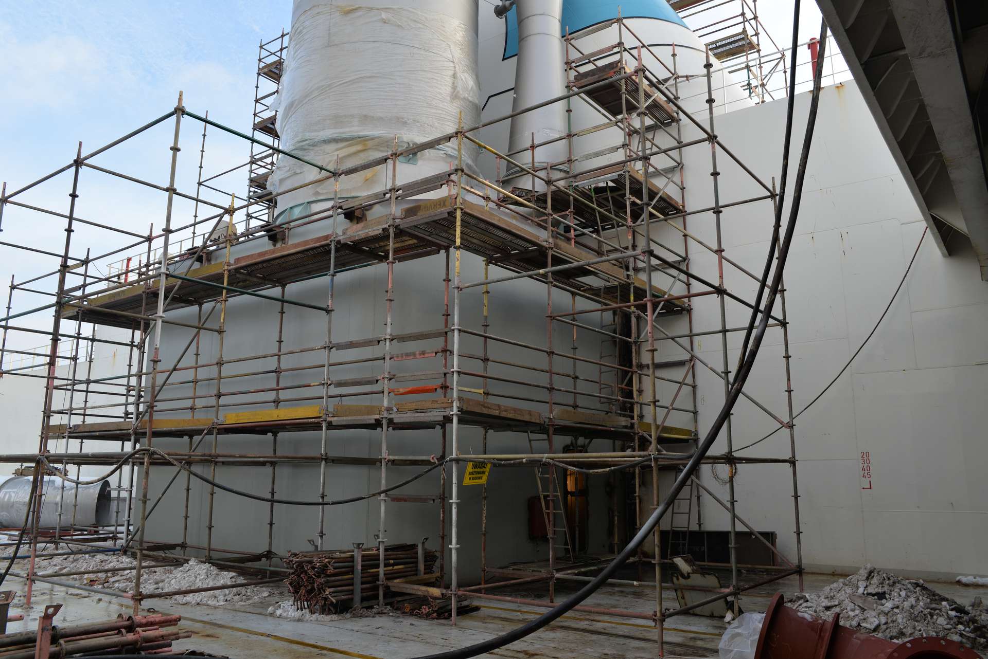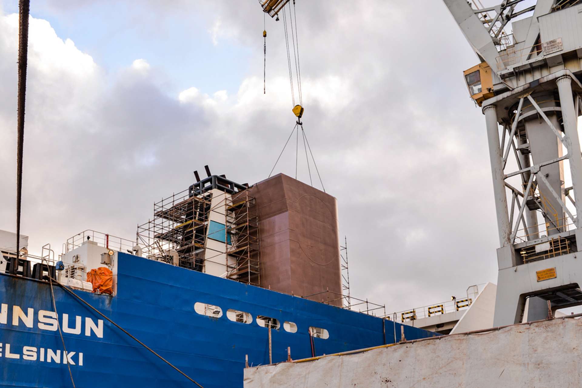 Na serii bliźniaczych fińskich jednostek zainstalowaliśmy scrabbery. Remonty rozpocząły się od wykonania i montażu na jednostce fundamentów. Następnie transportowaliśmy i montowaliśmy wcześniej przygotowany scrabber. Na końcowym etapie przebudowywaliśmy istniejący komin aby zaadaptować go do nowej konstrukcji