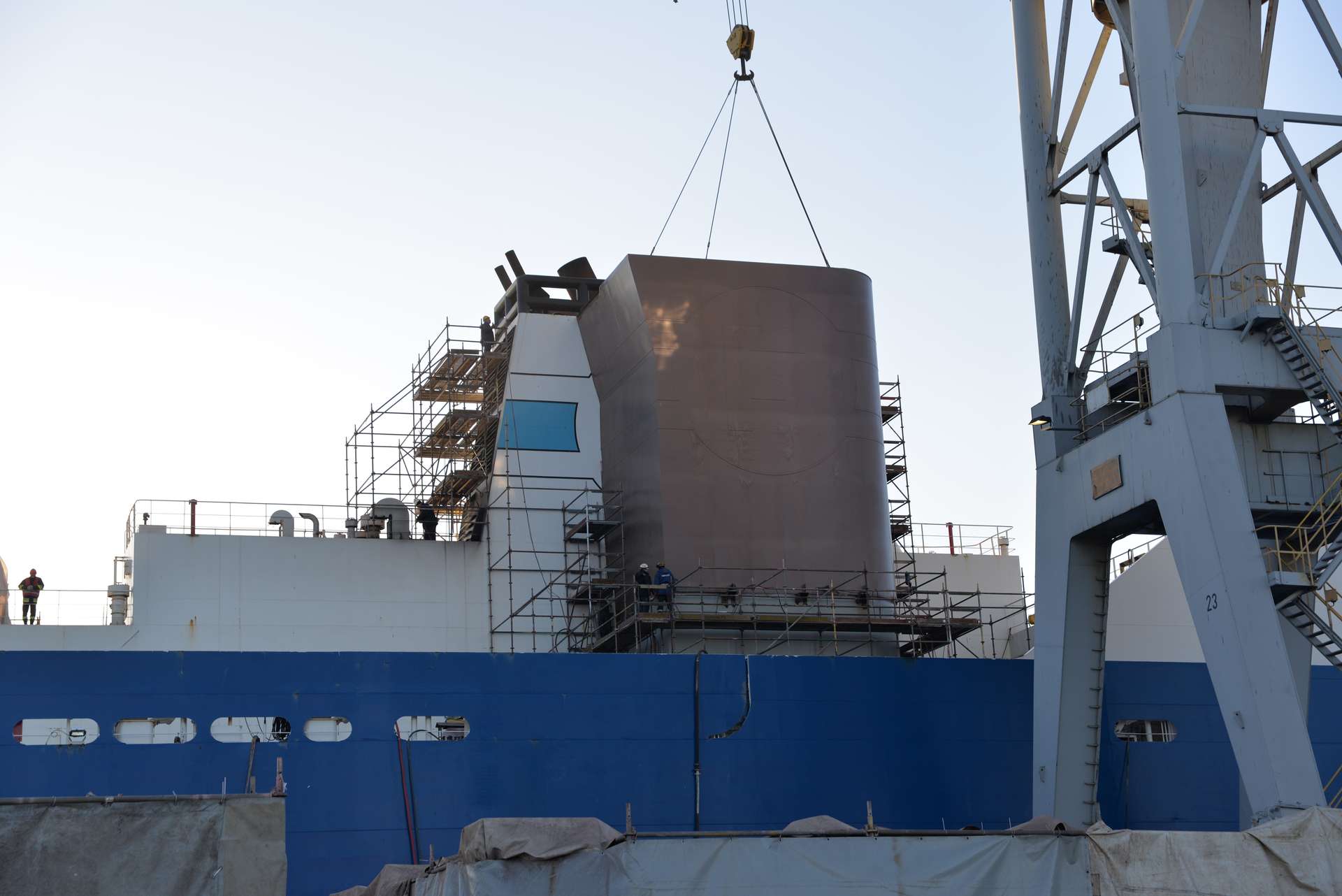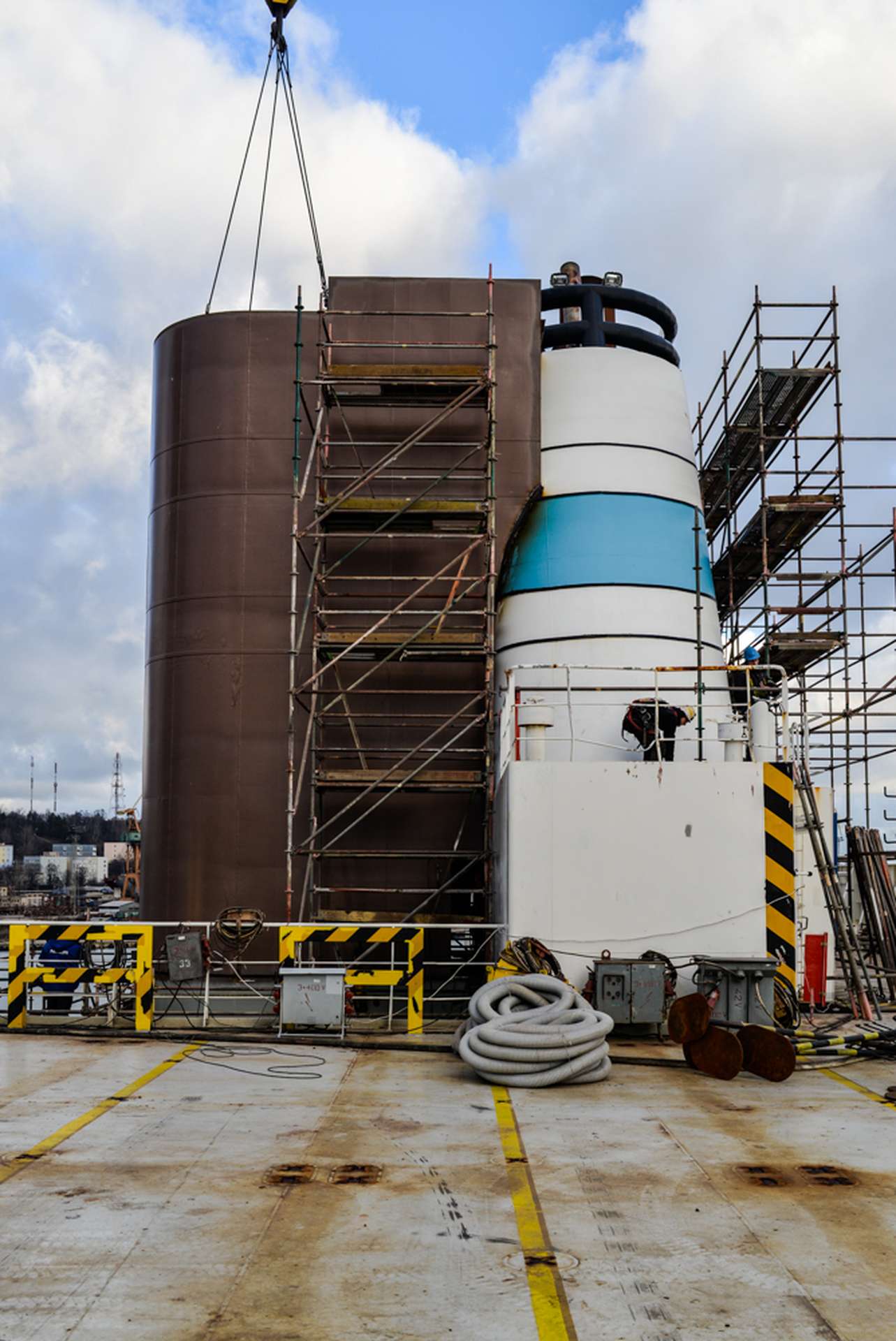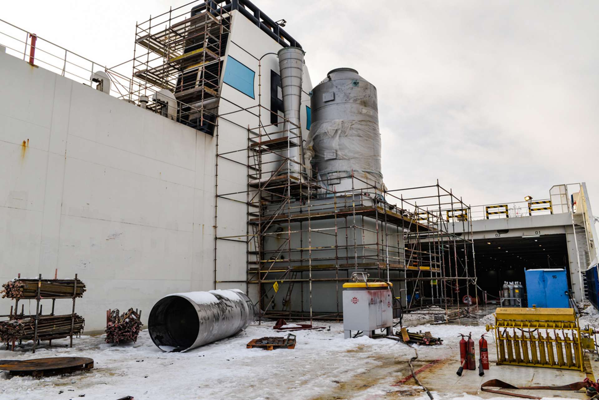 Na serii bliźniaczych fińskich jednostek zainstalowaliśmy scrabbery. Remonty rozpocząły się od wykonania i montażu na jednostce fundamentów. Następnie transportowaliśmy i montowaliśmy wcześniej przygotowany scrabber. Na końcowym etapie przebudowywaliśmy istniejący komin aby zaadaptować go do nowej konstrukcji