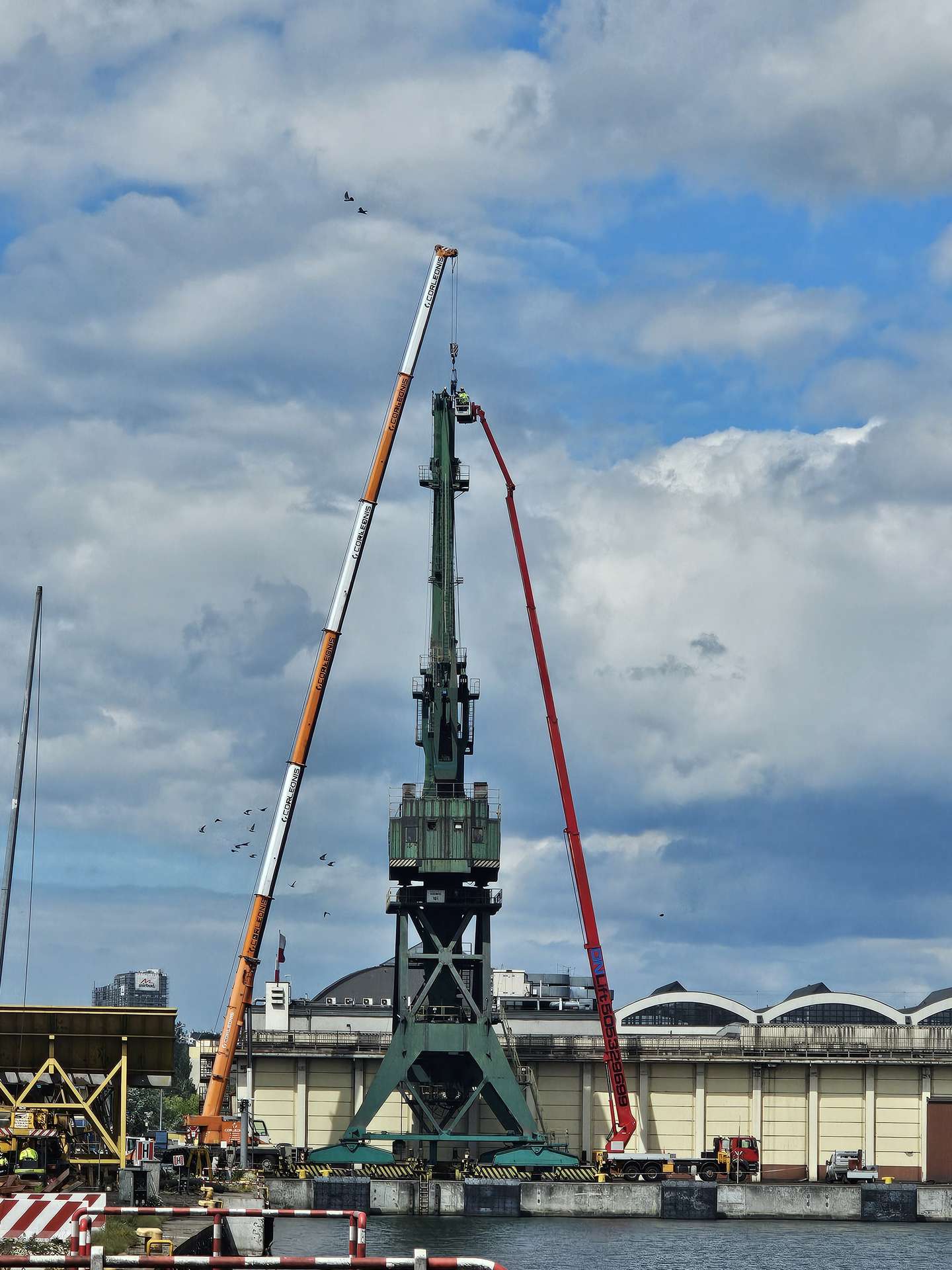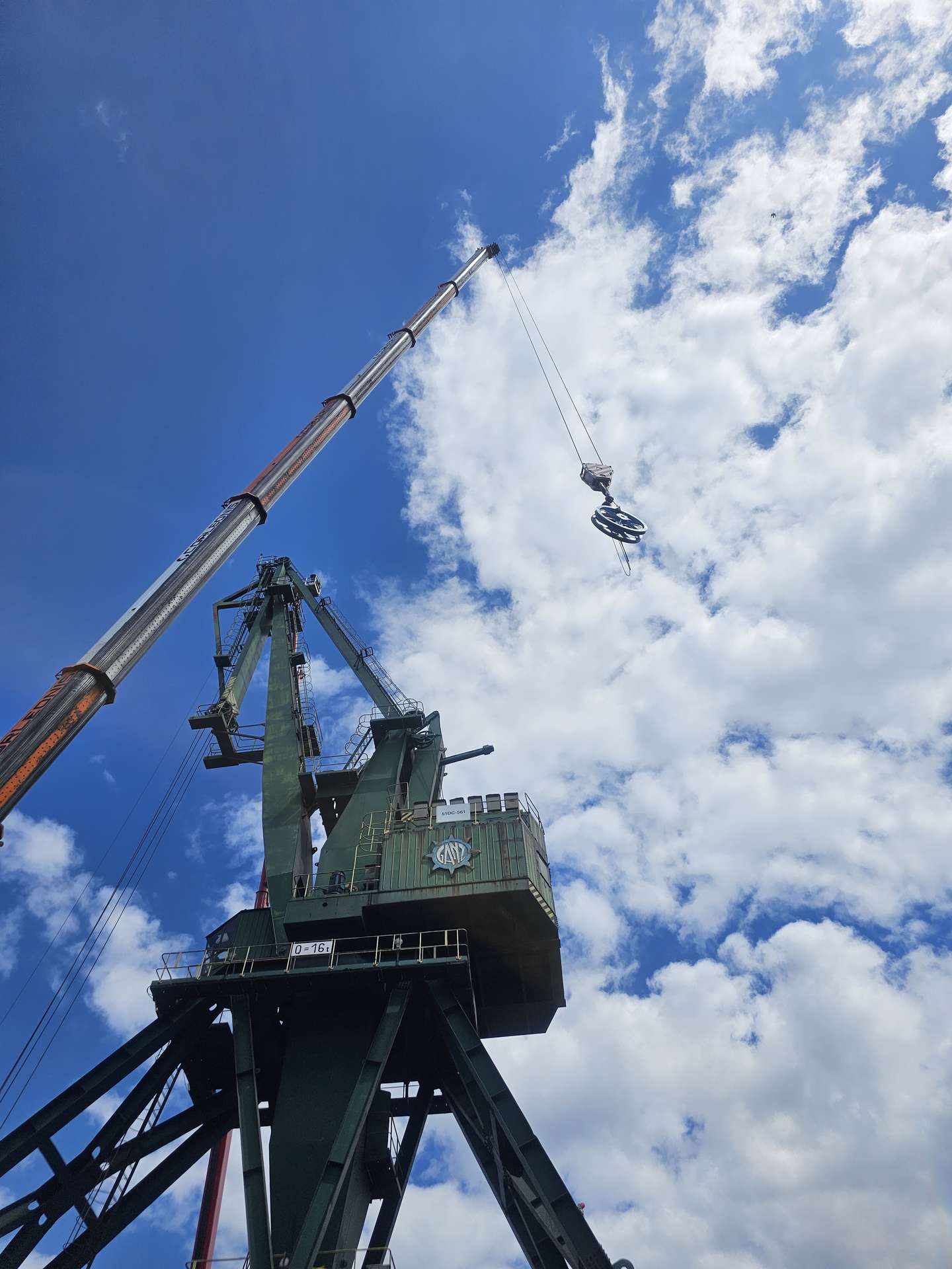 Przy użyciu samojezdnego żurawia i jednego z najwyższych w Polsce podnośników koszowych wymieniliśmy szczytowe koła linowe na żurawiu portowym w Gdyni.